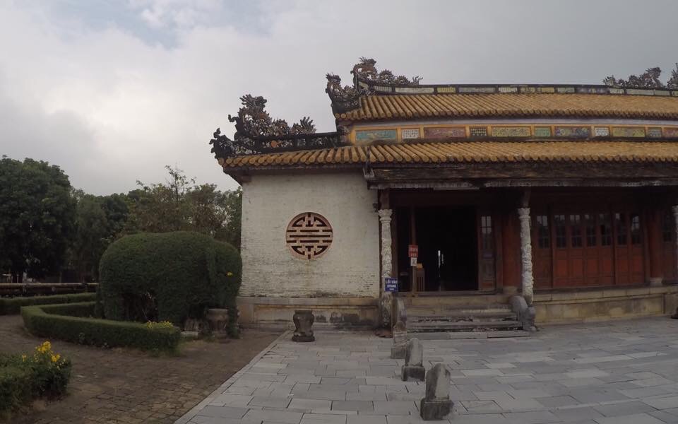 We arrived in Hue rather refreshed after taking the sleeper train which was the best we have been on to date. The mattress was very comfy, with nice bedding and good pillows. We were even lucky enough to have a room to ourselves! We decided to walk to our hotel as the route took us through the park at the side of the river. It had started raining but it didn’t matter. The city was beautiful and although the roads were as mental as ever, the tree lined streets seem to offer a barrier to the traffic making the city much more relaxing.
